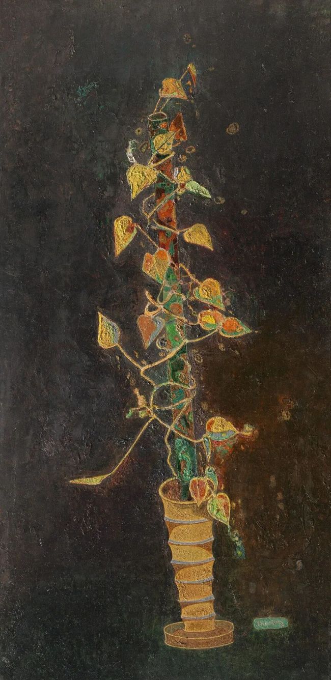 戴家峰的《植物》系列作品,是其艺术理念的生动诠释。在他笔下,植物不再是自然中单纯的生命体,而是经过内心过滤与艺术升华的精神符号,是他心中崇拜与共情的生命意象。他摒弃对植物外形的写实复刻,以解剖式的艺术视角,捕捉植物的肌理与灵魂,将植物的蓬勃生机与凋零憔悴、明媚绚烂与黯然沉寂全然展现,勾勒出生命从生长到消逝的自然轮回。这些看似简约的画面,绝非粗浅的表达,而是经过高度概括、提炼与纯化的艺术结晶,剔除浮华糟粕,留存本真内核。观者从作品中,能感受到他对自然生命的敬畏,对生命规律的思考,更能引发对生命本质的无尽联想,让每一株植物都拥有诉说情感的力量,拥有独属于自己的个性与温度。