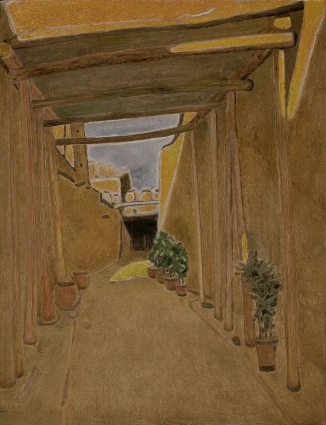 除了《植物》系列,戴家峰的《古城》系列同样极具艺术感染力。他笔下的古城,并非对现实古迹的照搬复刻,而是历经岁月洗礼、风雨沧桑的精神家园。画面中的古墙、旧物、街巷,承载着岁月的足迹,饱含着时光的厚重,在阴晴圆缺的洗练中,尽显古朴与真诚。他以画笔诉说着古城的故事,传递着对岁月沧桑的感慨,对先辈生活与悲欢的敬畏,更寄托着自己内心深处对过往岁月的眷恋。他跳出写实的局限,将自身的情感与感悟融入古城景致,让画面超越时空界限,成为心灵的庇护所,展现出独属于他的艺术视角与人文情怀。