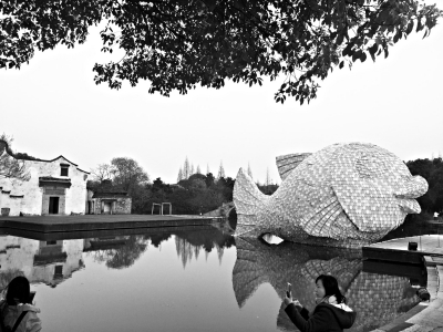 “大黄鸭之父”霍夫曼专为乌镇打造的《浮鱼》。 本报记者 陈涛摄