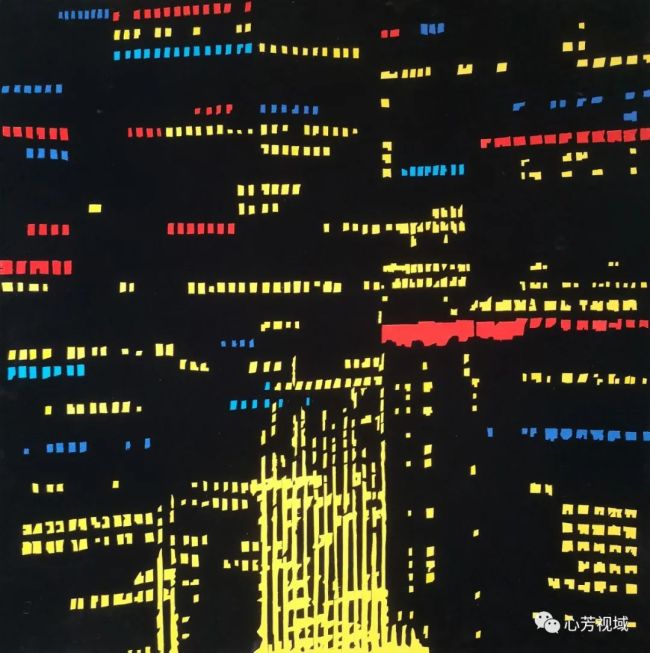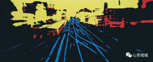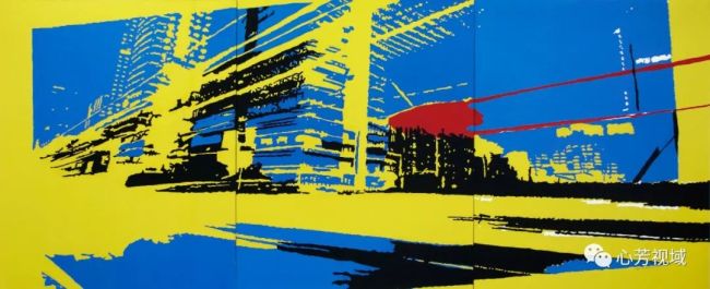 但画面中的蒸蒸日上的色彩想要表达积极的情绪--画面中无序当中有序的构成,都是画家想要解读的积极层面。