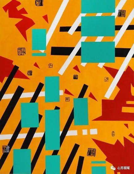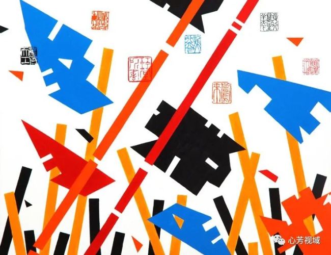 通过这两个方面--传统形象色彩和抽象几何形式引发了作者对中国传统文化与西方现代艺术关系的思考。其绘画的巧妙之处在于将绘画的技巧不经意间融入艺术家自我直觉与感受。