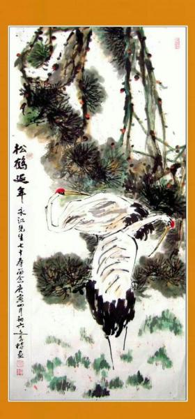在王骊丁看来,画面中双鹤构图恬静生动,与几缕松枝呈“延年”寓意相得益彰,布局协调自然,大气通透,写意灵动,色彩绵延深远,落款规整与作品画面和谐结合,于老辣中凸显妙指功力!
