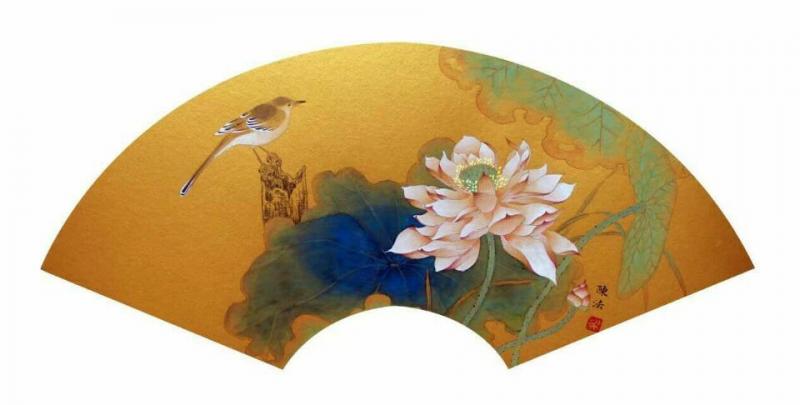 陈法先生扇面工笔花鸟作品给我的感觉不错,尤其是那只雀鸟,栩栩如生又相得益彰,整体布局协调自然,画面雅致又不失灵动,更不带有临摹釜凿之工,堪称佳作。