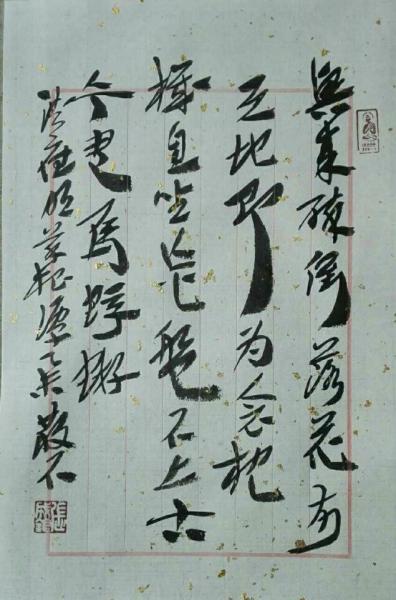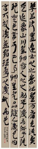 师从著名书法家王冰石先生,书法初学颜真卿楷书,后上溯汉魏,临习《石门颂》、《乙瑛》、《张猛龙》、《石门铭》及十余种北魏元氏墓志,草书宗王铎、黄庭坚、怀素。临池不辍四十余载,隶书宗《石门颂》,草书深得黄庭坚用笔结体、王铎涨墨法之神韵。