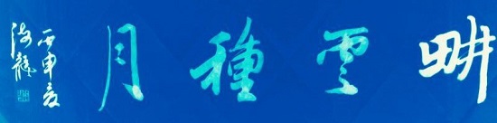 读海龙先生书法作品,章法布局合理紧凑,开阖有度,既严整又透气,观之不觉得紧张,尤显典雅不俗,此中味道惟师法“二王”方可达也。而“二王”笔法过于小巧,字大了很吃亏,观几幅大字作品,感觉先生有很强的线条把控能力,若没有多年研习古今优秀书家作品之经验,很难达到如此娴熟之境界。海龙先生在作品中强调了中锋,把线条拉长,从而解决了线条纤小的问题,可见先生笔法风格已在“二王”之外。此探索精神很值得吾辈学习。值得探讨的是,先生书写时或许是过于强调转折,给我的感觉略显硬些,如再圆润些会显得内力更足。