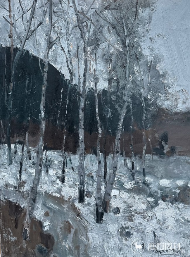 《雪中白桦树》布面油画 80cm×60cm 2023