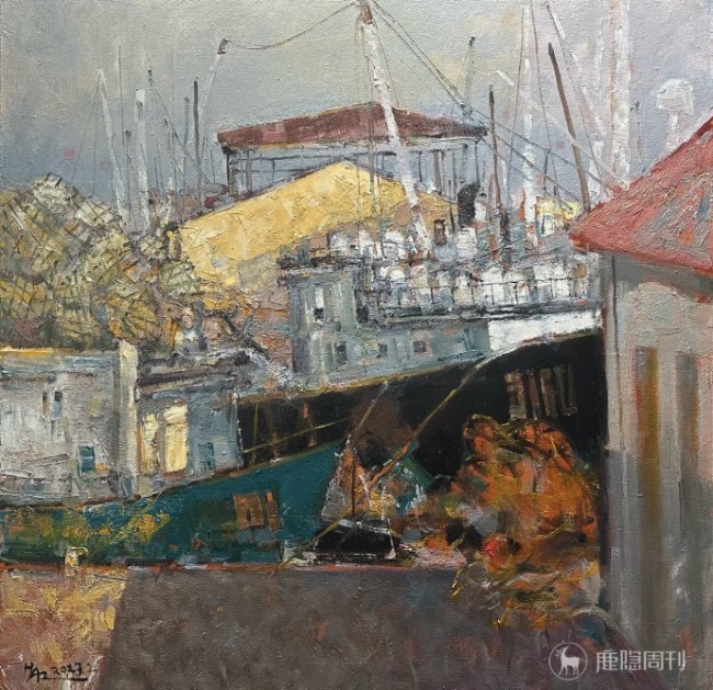 《渔港码头》布面油画 100cm×100cm 2023