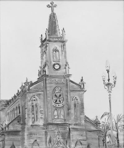油画《泛船埔天主堂》,呼唤在城市建设中珍视历史遗存。