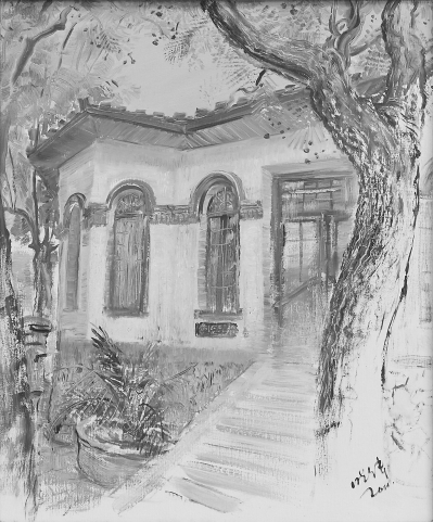画王世静肖像时,李晓伟已搬到兰庭新天地新家,在阳台上可以看到不远处的幼儿园。与幼儿园相接的老洋房,正是王世静的晚年故居。