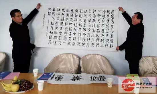 12月14日,藏品艺术网爱心书画家联盟发起人、将士丰采书画院执行院长兼秘书长王景轩一行来到邢台市癫痫病医院看望慰问医护人员,并向该医院赠送了联盟书法家李海霞创作的“北国风光”和“鸿业博兴”两幅作品。据悉,这是联盟自12月3日成立以来,开展的首个慰问活动。