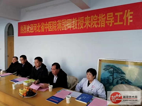 12月14日,河北省中医院教授蒋国卿一行在医院开展学术交流。原卫生部《健康大视野》杂志总监,藏品艺术网总编辑,将士丰采书画院执行院长兼秘书长王景轩(左2)参加座谈。