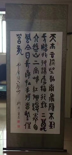 姚振普将军,将精心创作的“气壮山河 义薄云天”书法作品赠送给朱瑞将军纪念馆收藏