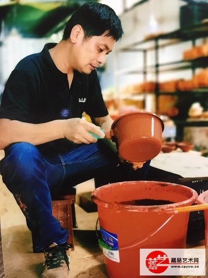 范裕钦先生在给建盏上釉