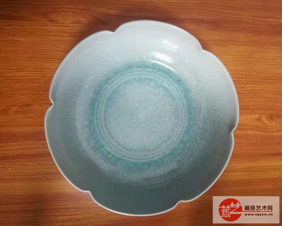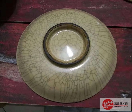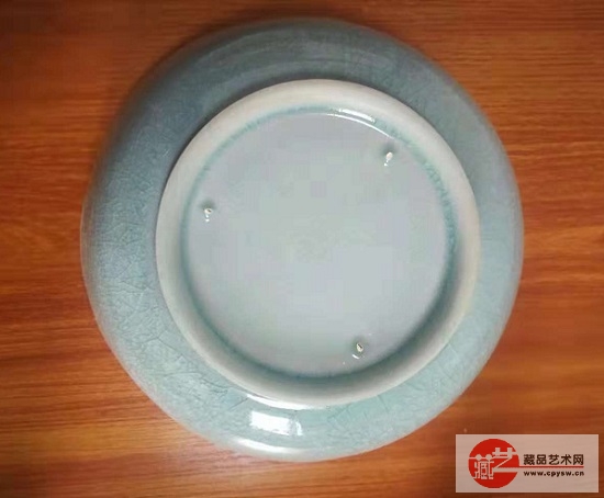 北宋天青色官汝窑(背面) 藏家点评:北宋天青色官汝窑,玛瑙入釉,冰裂纹,釉色纯正,包浆自然,为不可多得北宋汝窑。