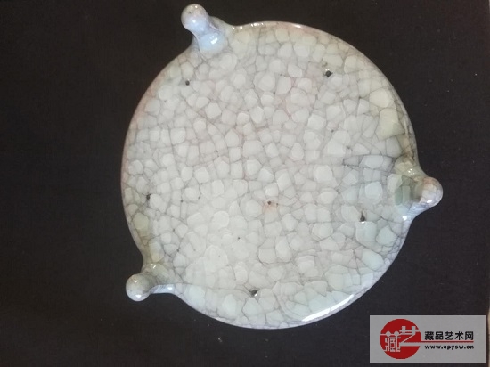 北宋汝窑——冰裂纹三足洗(正面) 北宋汝窑——冰裂纹三足洗(背面) 藏家描述:此北宋汝窑冰裂纹三足洗,高5公分,口15公分,底14.8公分,本藏品包浆温润,叠加的冰裂纹明显,100倍微观,可见黑,红色的破泡似玉非玉包浆十分温润晖厚。十分难得。 |