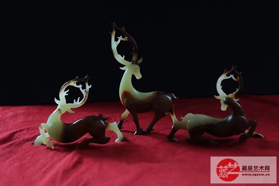 二、和田白玉三只鹿