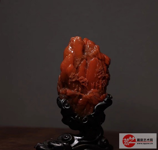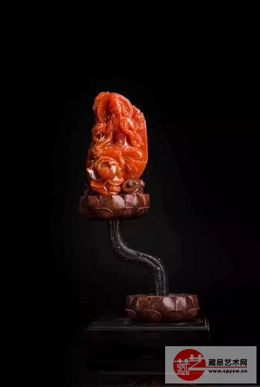 这件作品是保山南红最有名的滴水洞产出的,滴水洞清代皇家御用矿,现在早已封矿。这件作品是天工奖多次金奖获得者卢云峰老师(国家巧雕大师)亲自设计雕刻。