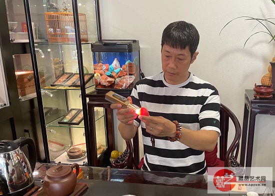 藏家介绍: 冯裕明,男,1970年生,天津人,现为藏品艺术网收藏艺术委员会理事,中国文化信息协会南红专业委员会常务副会长,云南省保山市南红行业协会名誉会长,中国古玩艺术品收藏鉴赏研究会宝玉石分会理事、亚洲珠宝联合会理事等。2015年在北京成立南红文化艺术馆,同年在四川西昌成立美佩玉石工作室,2017年在苏州合作成立石己艺术工作室,2019年在天津古文化街成立灵石阁高端玉石私人定制店。 2013年至2020年分别受邀中央电视台、北京电视台、天津电视台、翡翠王朝等节目组,参与和主持南红节目的录制。