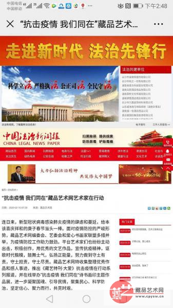 ▲2019年12月3日,藏品艺术网爱心书画家联盟由王景轩发起成立,图为党报头条相关报道 2020年度组织开展的公益项目