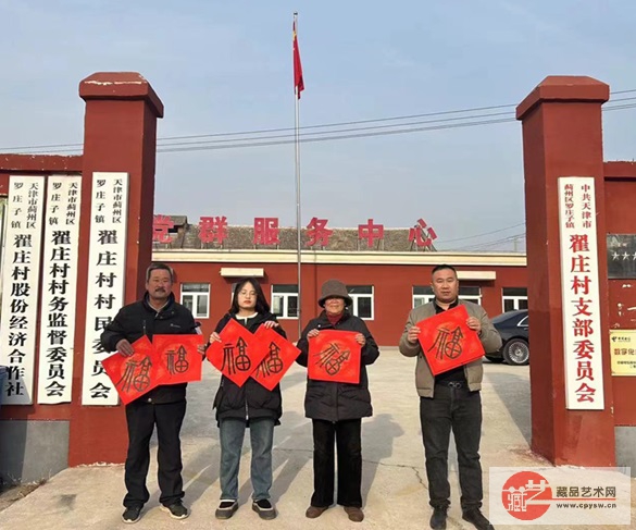 ▲2024年2月4日,藏品艺术网爱心书画家联盟和将士丰采书画院组织书画家书写福字春联,慰问赠送给天津市蓟州区罗庄子镇革命老区村——翟庄村的老党员和老退役军人,向乡亲们送上龙年新春的诚挚问候与祝福。