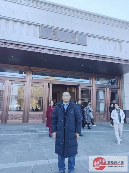 2024年1月24日,王鑫平在中国国家版本馆中央总馆参观留影 王振洋,本名王景轩,字鑫平,新闻学专业本科,从事多年记者、编辑工作,曾是时政、军事、政法、社会、健康、文化、经济等多行口的资深跑口(文字)记者,亦是有着出版社、电视、报纸、杂志、新媒体、自媒体等从业经历的“全能型”媒体人,是藏品艺术网和将士丰采书画院的主要创办人之一。2003年4月获评北京市“法院题材报道优秀记者”。2009年被CCTC中国书画资格认定评审中心、中国书画职称评审委员会评定艺术资格为一级书画师。2020年3月在疫情防控期间,荣获民盟河北省委反映社情民意信息工作先进个人。2022年被授予北京市区级“孝顺之星”称号。2023年5月荣获民盟北京市委社情民意信息工作先进个人。 先后发表有诗歌代表作《哨兵》(北京日报),责任编辑长篇小说《情窗谊草》(同心出版社),歌曲作词代表作《寄上一段情》等,曾独自发行电视节目《中华文明礼仪》(40余家地市台及省台播出),担任电视剧《六祖慧能大师》新闻顾问等。 王鑫平热爱书画创作、爱好艺术收藏,更热心公益事业。曾多次组织举办书画展览、公益笔会等活动,多次组织带领红色后代子女、老将军、老同志到全国各地宣讲红色爱国主义教育和革命传统教育,多次组织带领书画艺术家深入部队基层、街道、乡村走访慰问,多次参与组织慈善捐赠、义卖等活动,赢得社会各界的广泛好评。 从新冠疫情发生至2023年底,王鑫平积极捐款捐物,通过发起成立的藏品艺术网爱心书画家联盟和将士丰采书画院,向社会各界有需要的单位和个人组织捐赠6200多幅书画家作品,其中,其个人捐赠作品数达3600余幅,组织捐款及捐赠防疫慰问物资21万余元。人民日报海外版、党报头条官网、光明日报客户端、中国红色文化党建网等对其事迹和公益活动予以多篇报道。