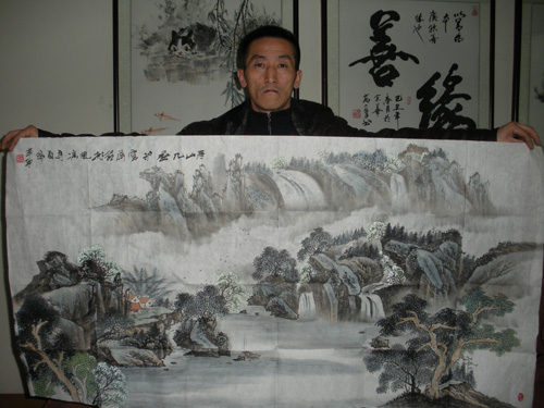 王学波,1962年9月13日生,汉族,祖籍黑龙江省五常市,职业书画家,现定居北京。书法擅长隶书、草蒃,初临《张迁碑》、《曹全碑》等碑帖,早期习学隶书,后偏好刘炳森书法,研习多年;国画擅长花鸟、山水,师从韩国著名画家姜大吉先生,潜心多年,创作有书画作品数百幅,其山水作品秉承黄永玉之风,苦心钻研,别具一格,受到各界的高度评价,并被国内外众多藏家、美术研究机构、画廊、各界知名人士收藏。