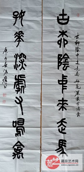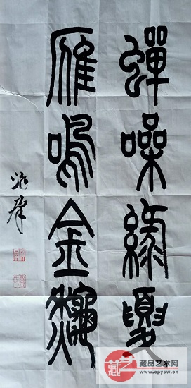 刘泽群先生篆书“古柳阴中来走马 好花深处有鸣禽”联