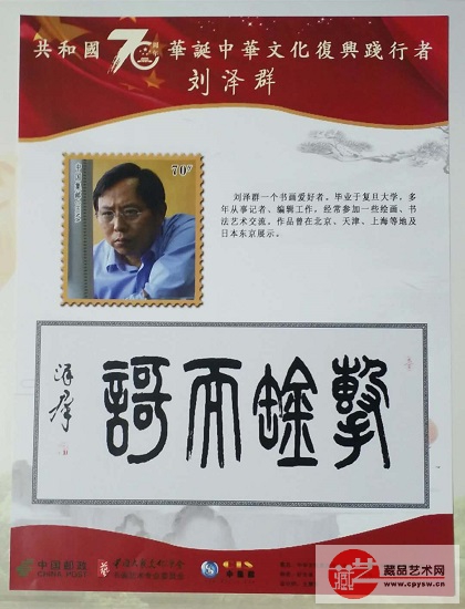 刘泽群(笔名小草),中共党员,曾就读于上海美术专科学校,上海复旦大学毕业,专攻比较文学研究,多年从事记者、编辑工作。现为上海后世博华夏书画院副院长兼秘书长,藏品艺术网书画艺委会常任理事等。他自幼勤奋好学,在其父和阿文老师的训导下,书画功底与日俱进。他的书画、摄影作品获得多次、多项奖励,曾于上海城市规划展示馆等处展出。特别是他的篆书作品,颇为业内人士称道。二零零九年八月,日中友好协会在《新美之窗》刊出他的篆书作品;同年十月,日本东京的一家展示馆展出了他的四条屏作品;岳飞气壮山河的《满江红》,配以遒劲有力的篆体字,博得观众好评,被爱好者收藏。著有《刘泽群书作选》。2020年疫情期间,他热心公益事业,积极创作并通过藏品艺术网书画艺委会向困难群众和医院、学校、邮递业协会等单位捐赠多幅书法作品,荣获由藏品艺术网和将士丰采书画院联合颁发的2020年度“爱心公益奖”。