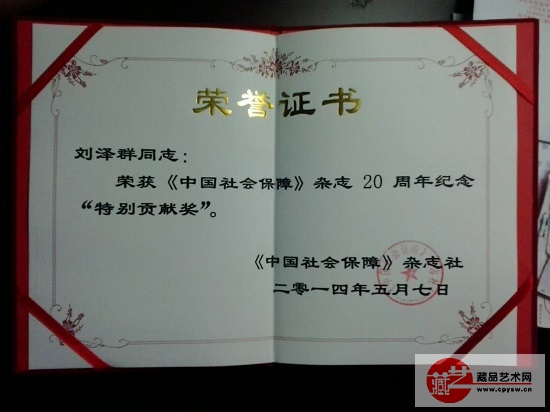 2014年,刘泽群荣获《中国社会保障 》杂志20周年“特别贡献奖”