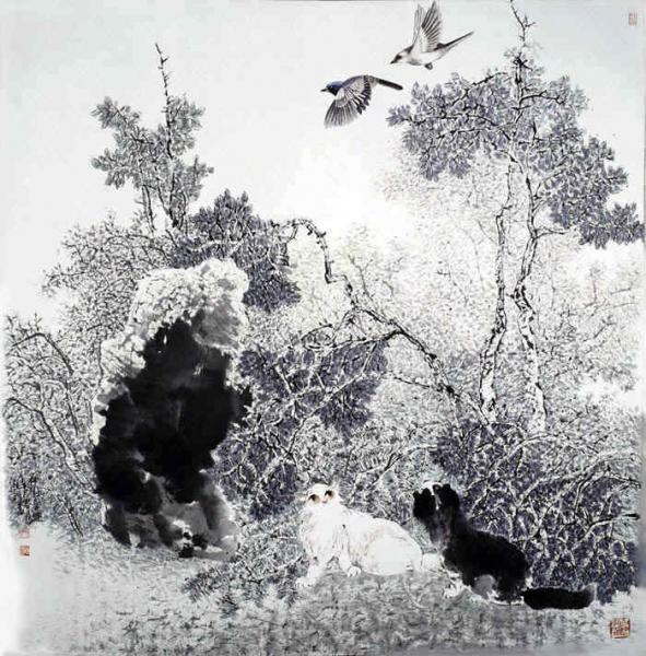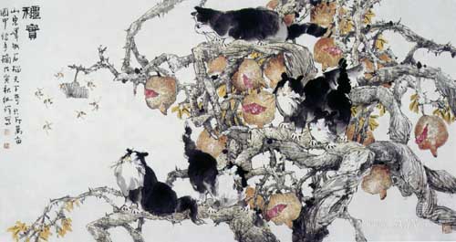 王纯祥,美籍画家,尤擅画猫。中国美术家协会会员、中国长城学会书画院副院长、中国国防大学书画研究院副院长、藏品艺术网书画艺术委员会理事、北京涉外经济学院国际精典书画分院艺术顾问,现乔居中国北京与美国洛杉矶。 时值花甲,研艺近五十载,业有所成初道人物、山水画、功深无量窥任百年、程璋、徐悲鸿、潘天寿后写意猫艺技失荒,无殊味可嚼,后续无人,匹夫有责,任重道远;弃大捡小小题大做敬齐白石无师自通传承创新,另辟蹊径,独树一帜,开宗立派创菱形眼猫,天赐鼻祖小写大写挥之传韵,出神入化,丈二巨作视微经历了国内外无数次各种展览,全国惟一首例写意猫作品10余次选入中国美协大展并有获奖,填补了二十世纪末二十一世纪初,当代无写意猫作品展览的空白时段,载入美协展览历史年表被邀请七至十四届专项当代中国花鸟画邀请展人民大会堂、毛主席纪念堂全国政协厅,江泽民等国家政要,均有作品珍藏。 作品欣赏: