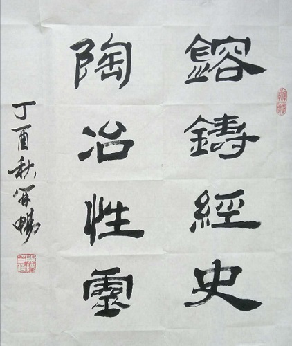 艺术介绍: 周开畅,中国俊彬书画院副院长、广西分院院长,中国名人书画艺术中心理事,中国东夷书画研究院院士,中国国际书画艺术研究会聘为研究员,著名书画家吴俊彬弟子,黄胄再传弟子,1954年出生于广西桂林灌阳,现为广西书法家协会会员,中国新闻出版书法家协会会员,兴安书法家协会理事,藏品艺术网书画艺术委员会会员、签约书法家,本人爱好书法,长期坚持自学,从1987年开始步入学书以来,自巳临习古人帖,广涉篆、隶、楷、行、草诸书体。今年还拜师绘画。 艺术成就: 作品曾参加县市区及全国展并获奖,书法作品还石刻于碑林。在2005年作品入选全国移动举办的书法展。2012一2013年参加广西移动举办的书法展均获一、二、三等奖及优秀奖、人气奖。2016年参加第三届中日古墨书法作品展获优秀奖、参加中国新闻出版书法家协会主办的(全国)长征颂书法展入展;2017年拜著名画家吴俊彬为师,成为吴俊彬第十七个弟子,作品被入选10余部书法作品集,并多次参加慈善活动书画拍卖会,作品被桂林市美术馆及中国艺星网收藏、收录在大型人物报告文学纪实典籍《大国崛起》丛书,经中国邮政部门严格审批,准予出版素有“国家名片”之誉的邮票、邮品、邮册,入选中法建交53周年“杰出华人艺术家——周开畅”纪念珍藏邮册,入选庆祝香港回归祖国二十周年“中国当代书画名家——周开畅”及喜迎中国共产党第十九次全国代表会(不忘初心,继续前进)中国当代艺术大家——周开畅珍藏邮册,被收录入文化部文化艺术人才库。 退休前,曾在中国移动一成立任广西桂林兴安分公司负责人、经理、总经理、书记、工会主席、资深经理等职;曾任兴安县政协第五、六届委员。2017年被中国名人书画艺术中心评为:“当代最有实力书画家前100名”、“最有收藏潜力书画家”和“吴门八雅书画派”代表人物。