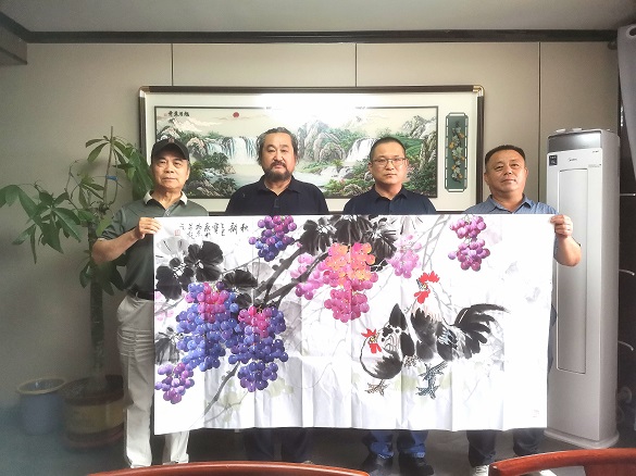 2025年7月26日,王宝永先生(左2)与藏品艺术网总编辑、将士丰采书画院院长王景轩(右2),将士丰采书画院理事张冠群(左1)和藏品艺术网爱心企业家联盟理事单位——宫御庭膳(唐山)食品有限公司总经理赵文广(右1)在其国画新作前留影 【藏艺网认证·王宝永先生代表作】作品鉴赏: