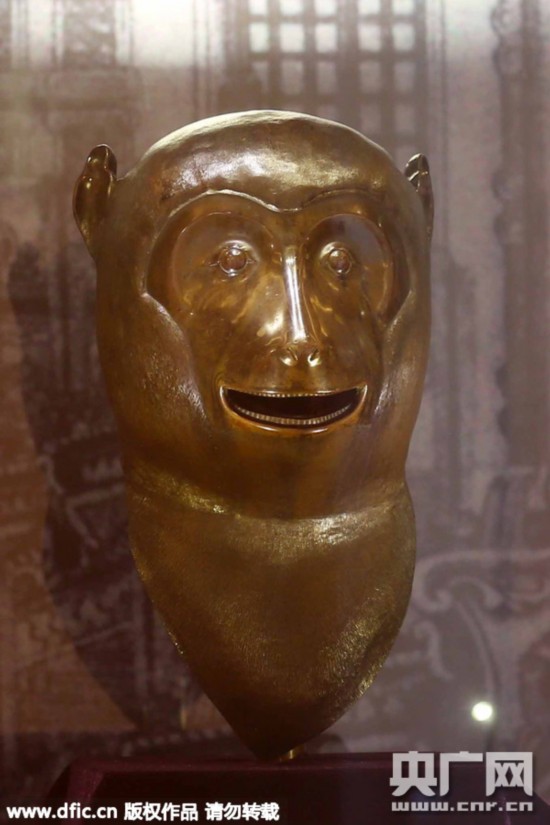 1860年,第二次鸦片战争期间,英法联军火烧圆明园,抢掠了十二生肖兽首及其它众多圆明园文物。图为猴首。