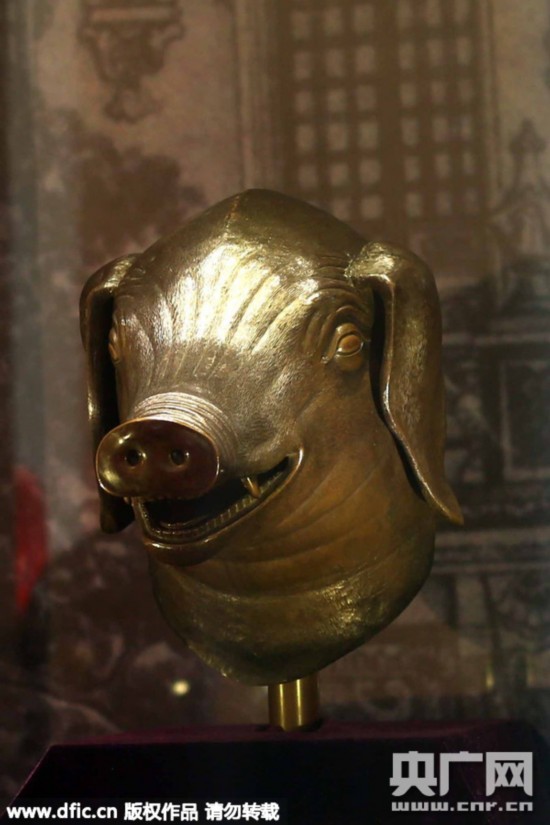 2000年4月底和5月初,在香港佳士得和苏富比的拍卖会上,牛首、猴首和虎首铜像现身。两家拍卖公司拍卖流失文物的做法,引起了中国香港和内地社会各界的极大愤慨。图为猪首。