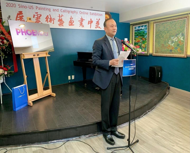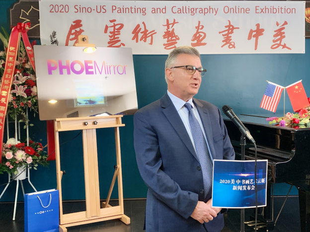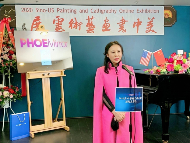 “2020美中书画艺术云展”新闻发布会于当地时间12月16日在美国加州的亚凯迪亚艺术学院的艺术中心举行,并首次启用云端模式进行全球网络直播。美国南加州华人社团联合会主席陈慧碧、美中文化促进会会长朱俊英、美中艺术家协会会长苗广耀、Phonetech集团CEO尼克·董(NickDong)、Phonetech集团执行董事格里高利(Gregory Mooshagian)、露西·朱(Lucy Zhu)、亚凯迪亚艺术学院美术部主任、Arcadia Yamaha音乐学校校长欧文·周(Owen Zhou)、美国奉商总会副会长贝蒂·任(Betty Ren)、美国奉商总会副会长宋婷、美中经贸促进会副秘书长托尼·林(Tony Lin)以及艺术家代表董俊英等出席了发布会。