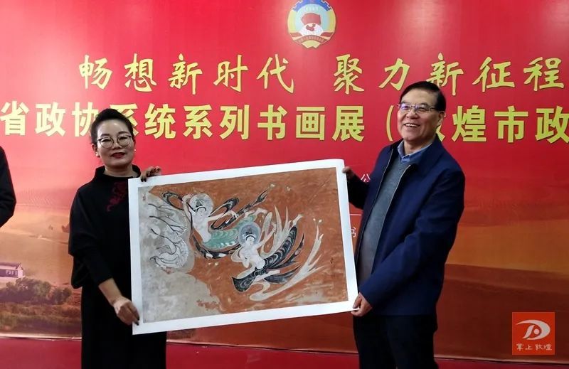 12月23日,由省政协办公厅主办,敦煌市政协承办的以“畅想新时代 聚力新征程”为主题的甘肃省政协系统系列书画展敦煌市政协专场在省政协书画院开展。 省政协副主席尚勋武出席书画展开幕式并宣布开展。省政协副秘书长赵一红主持开展仪式,敦煌市政协书画联谊会的部分参展书画家与省政协机关干部、政协委员举行了笔会交流活动。 敦煌市政协主席贺建生在开展仪式上致辞,希望通过这次展出能更好地激发敦煌政协书画联谊会书画艺术家们的创作热情,通过艺术交流进一步提高他们的创作水平,更好地承担起传承发展敦煌文化的重任。 据了解,此次书画展共展出125幅书画作品,其中有出自省地市“政协人”的翰墨丹青,有来自敦煌研究院和当地书画家的人物墨迹,还有西北师范大学敦煌学院师生的斑斓油彩,整体展示了新时代敦煌政协人昂扬向上的精神风貌和履职尽责的初心使命,体现了敦煌市艺术工作者对敦煌文化的理解诠释和传承弘扬的人文情怀,更是打造“书香政协”的一次具体实践。