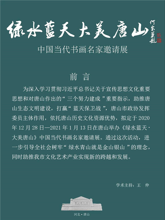 | Tags:绿水蓝天 大美唐山 中国当代书画名家 邀请展 邀请函 | [ 责任编辑:赵瑞峰 ] |