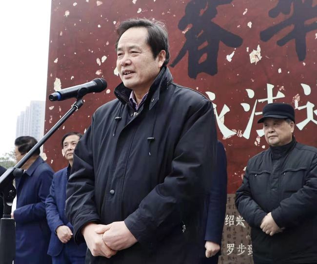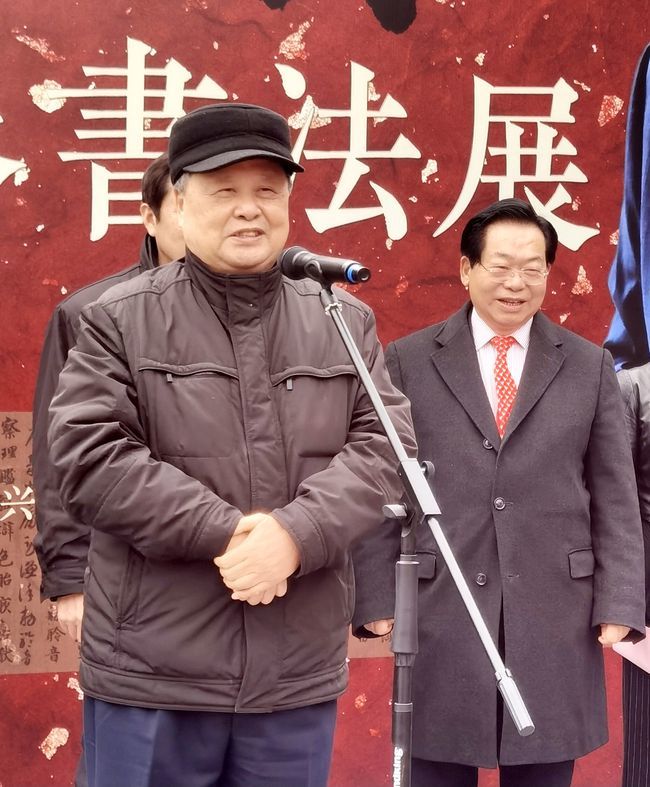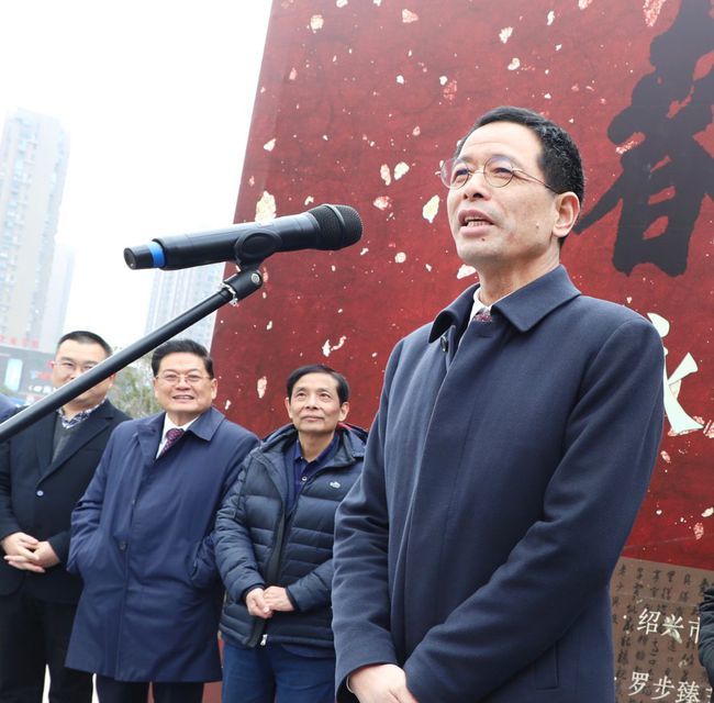 绍兴市上虞区政协主席顾世明宣布书法展开展