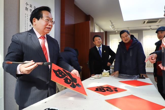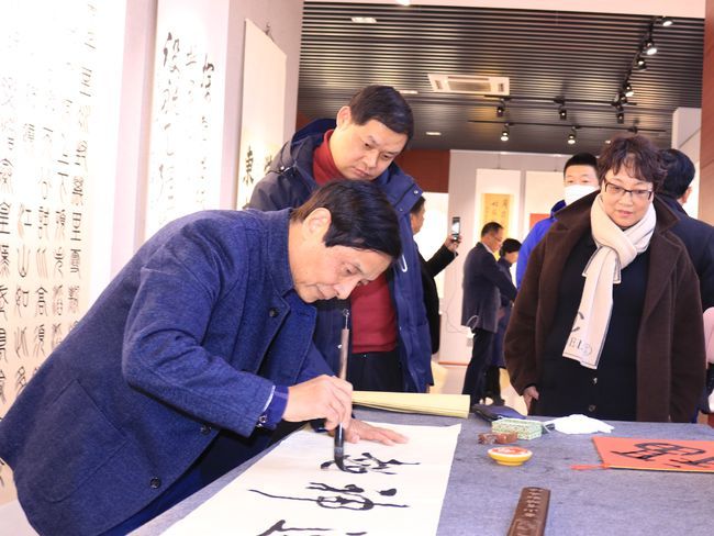 两地书法家纷纷提笔给前来观展的市民们送上“福”字和春联,现场洋溢出一股喜庆祥和的气氛。市民们纷纷表示,这是一份美好的新春祝福,对活动赞不绝口。
