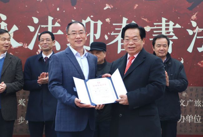 开幕式上,解放军总政治部原副主任兼中央军委纪委书记童世平上将向上虞区政协捐赠书法作品《沁园春·雪》,上虞区政协主席顾世明接受捐赠,并颁发收藏证书。