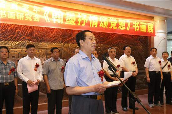 在“没有共产党就没有新中国”的乐曲声中,省直老年书画研究会名誉会长孟宪昌庄严宣布“河北省直老年书画研究会《翰墨抒情颂党恩》大型书画展开幕”。