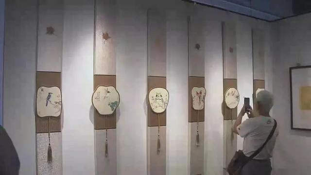 移步展厅,六条屏的花鸟装帧让人耳目一新,扇面、国画写意的花鸟题材于继承传统中又充满了独特的个性和情感。