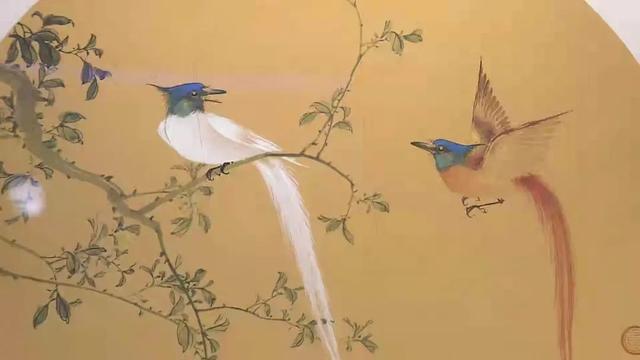 “我自己养鸟,所以我对画鸟独有情钟,上海好多花鸟市场各种各样的鸟我就会去看一看,鸟是很有灵性的,我感觉这些鸟的叫声都不一样,然后再翻了大量资料,花里面配上鸟,就很灵动,这幅画就很完整,花鸟画里头这是不可分割的。“王际梁先生告诉记者。