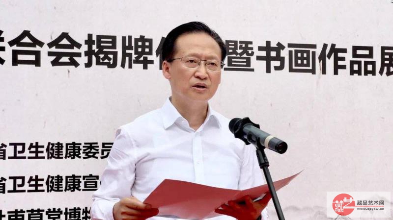 6月26日,四川卫生健康文学艺术联合会揭牌仪式暨书画作品展在成都杜甫草堂公共美术交流培训中心举行。省政协原副主席王正荣,省文联党组书记、常务副主席邹瑾出席活动,省卫生健康委党组书记、主任徐斌出席活动并讲话,委党组成员、副主任张峰主持揭牌仪式。