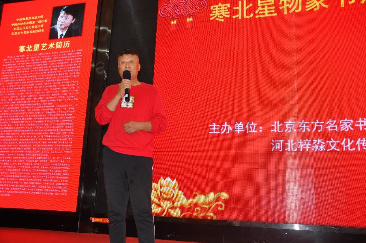 2023年9月28日上午,由北京东方名家书画院、河北梓淼文化传播有限公司共同主办的“迎中秋、庆国庆74周年暨寒北星物象书法艺术展”在河北省邯郸市举行。