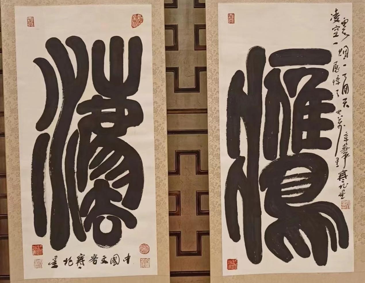 北京东方名家书画院院长、物象派书法创始人寒北星创作展出的物象书法艺术作品