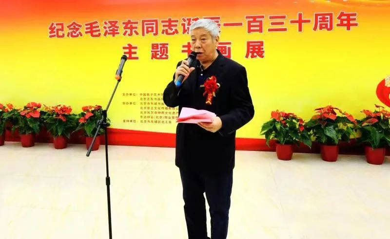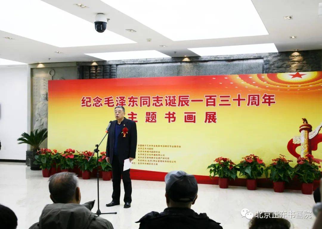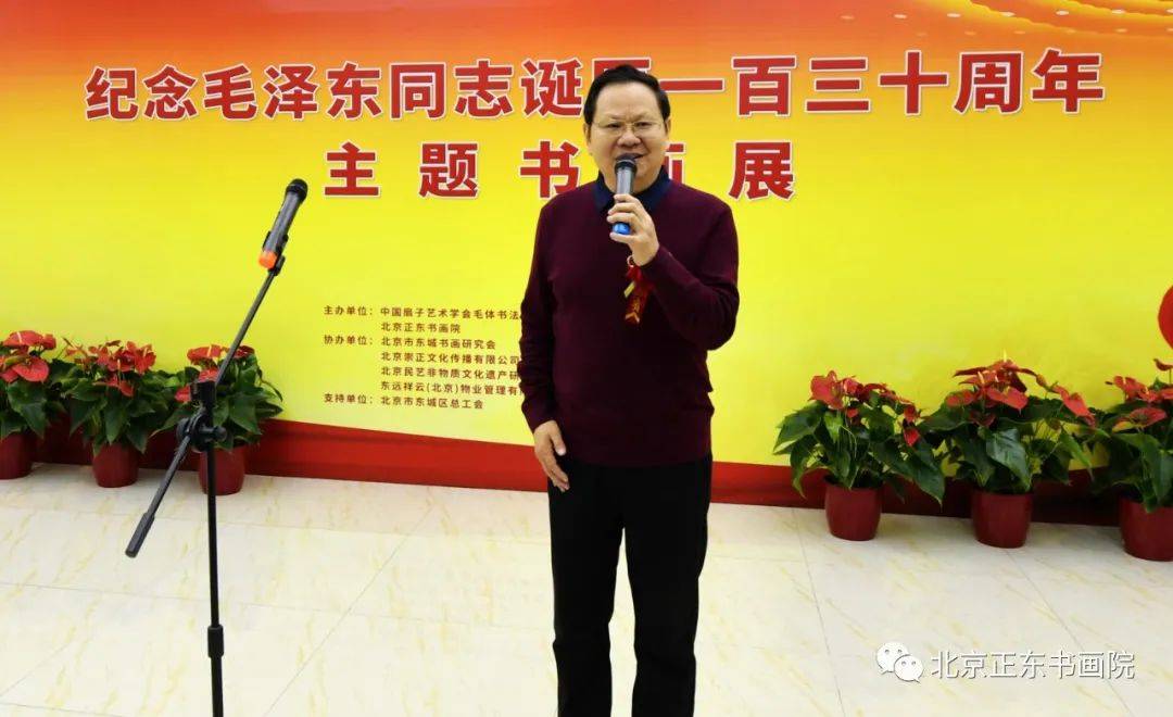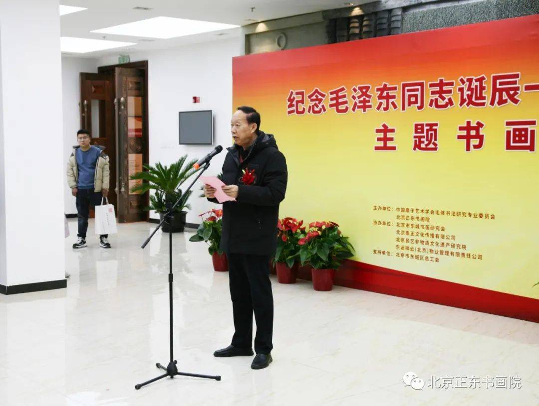 2023年12月10日上午,由中国扇子艺术学会毛体书法研究专业委员会、北京正东书画院主办,北京市东城书画研究会,北京崇正文化传播有限公司、北京民艺非物质文化遗产研究院协办,北京市东城区总工会支持的“纪念毛泽东同志诞辰一百三十周年”主题书画展开幕仪式,在北京职工服务中心隆重举行。