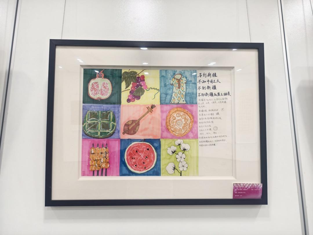 “参观完这个优秀作品展,我们从邱燕丽老师的讲述中了解了新疆的特色文化。邱老师将蓝染艺术带到了新疆的学校,教新疆的学生们用自己的双手创造出了一件件漂亮又独具特色的蓝染作品。蓝染最早出现于秦汉时期,它是我国的一种古老印染工艺,是我国珍贵的非遗文化。蓝染的技艺传承应该得到重视。”广州艺中高二(6)班学生李绮萍参观完书画展后颇有感触,她说,非遗文化传承的工作落在了新时代的年轻人身上,“文化传承的道路任重而道远,我们要在创新中传承中华优秀文化,让它在世界上发扬光大。”