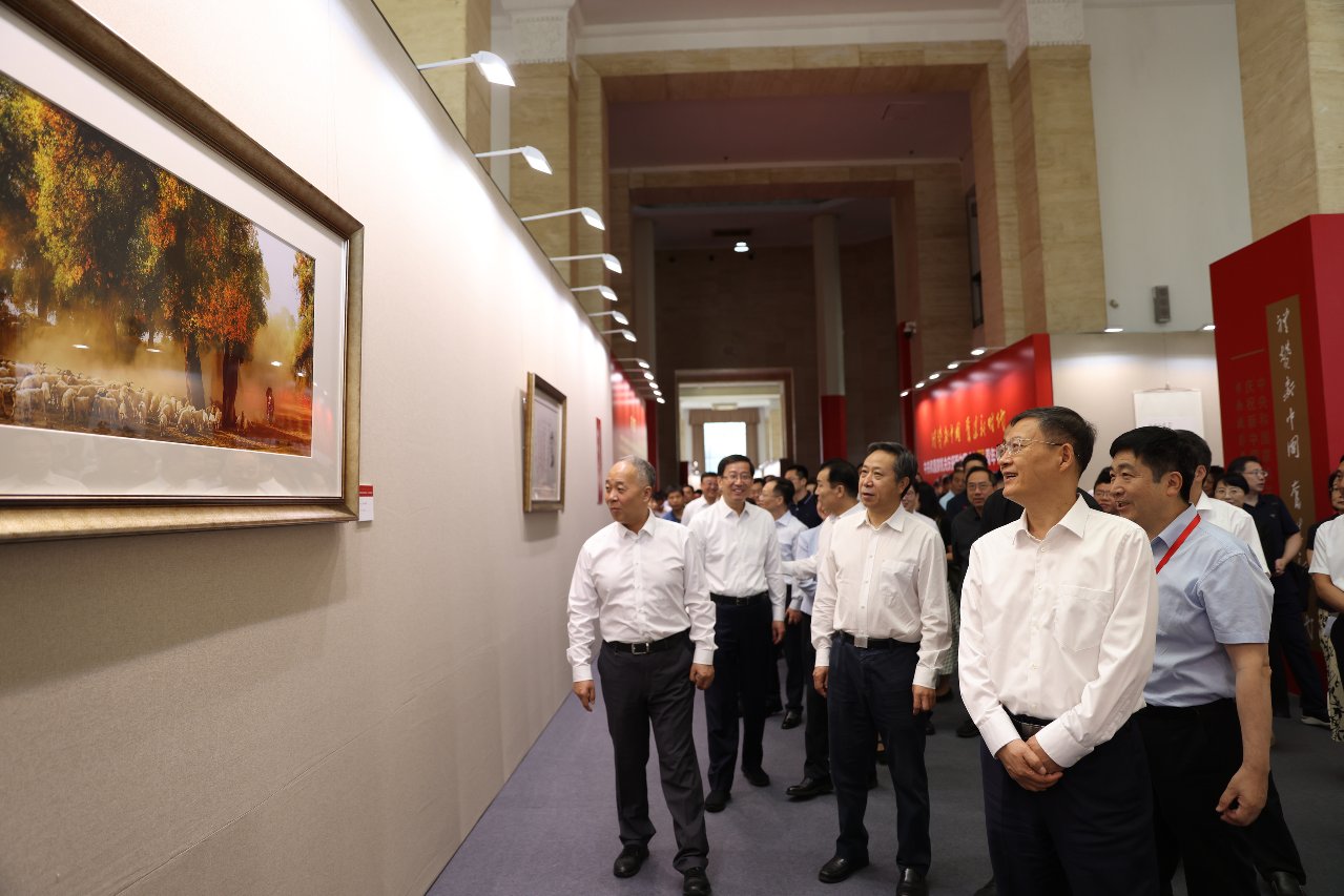 6月25日,“礼赞新中国 奋进新时代”中央和国家机关庆祝新中国成立75周年书画摄影展开幕式在全国农业展览馆举行。中央和国家机关工委分管日常工作的副书记郭文奇出席开幕式并宣布开幕。中央和国家机关工委副书记、中央和国家机关工会联合会主席蔡淑敏致辞,中央和国家机关工委副书记、中央和国家机关纪检监察工委书记王爱文,全国总工会副主席、书记处书记、党组成员魏地春,中国文联党组成员、副主席、书记处书记董耀鹏,农业农村部党组成员、副部长马有祥,文化和旅游部党组成员、副部长饶权,中央和国家机关工委委员、组织部部长闪伟强,中央和国家机关工委委员、基层组织建设指导部部长张璐等出席,中央和国家机关各部门机关党委、工会组织负责人,中国美术家协会、中国摄影家协会、中国书法家协会负责人以及中央和国家机关干部职工和参展作品作者代表参加。