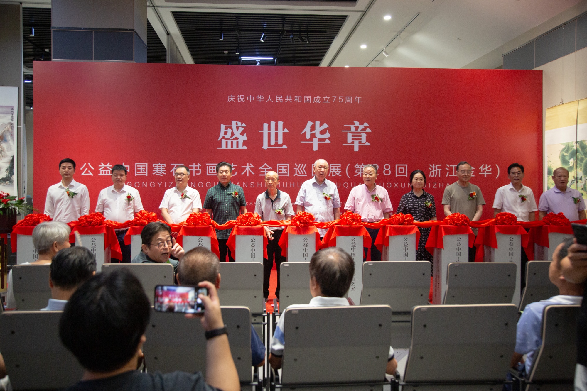 央广网金华7月7日消息(记者 杨正弘)7月6日上午,“盛世华章”公益中国——寒石书画艺术全国巡回展(第28站)”在金华开幕。解放军艺术学院原教授、国防大学军事文化学院原主任教授寒石携近年创作的150余幅精品力作在金华市金东区人文博览中心展出,为广大的金华人民群众带来了一道丰盛的文化大餐。